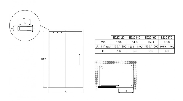 Раздвижная дверь с черным профилем, 170 см, E22C170-BL J.Delafon