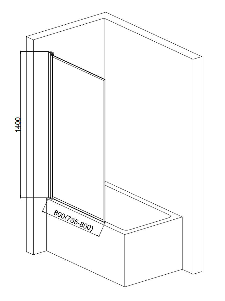 Шторка на ванну, стекло 6мм, цвет профиля черный, линия по периметру 80х140 AQM2859-L AQUAme в г.Челябинск