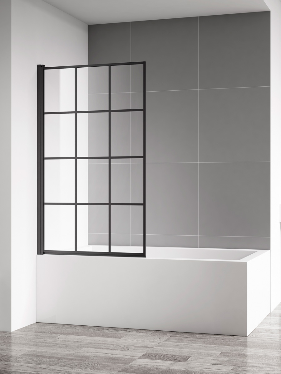 Купить Шторка на ванну, стекло 6мм, цвет профиля матовый черный 90х140 AQM2858-L AQUAme артикул: 214696 в интернет-магазине ESMAG - Челябинск.