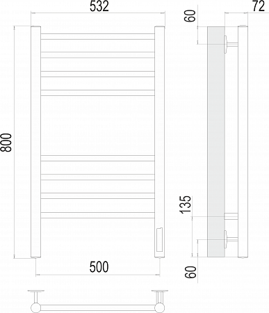 Наш электрический полотенцесушитель сочетает в себе функциональность, элегантный дизайн и передовые технологии. Матовое покрытие придает ему стильный и современный вид, который гармонично впишется в любой интерьер ванной комнаты. Благодаря встроенному диммеру вы сможете легко регулировать температуру и создавать комфортные условия для сушки и подогрева полотенец.