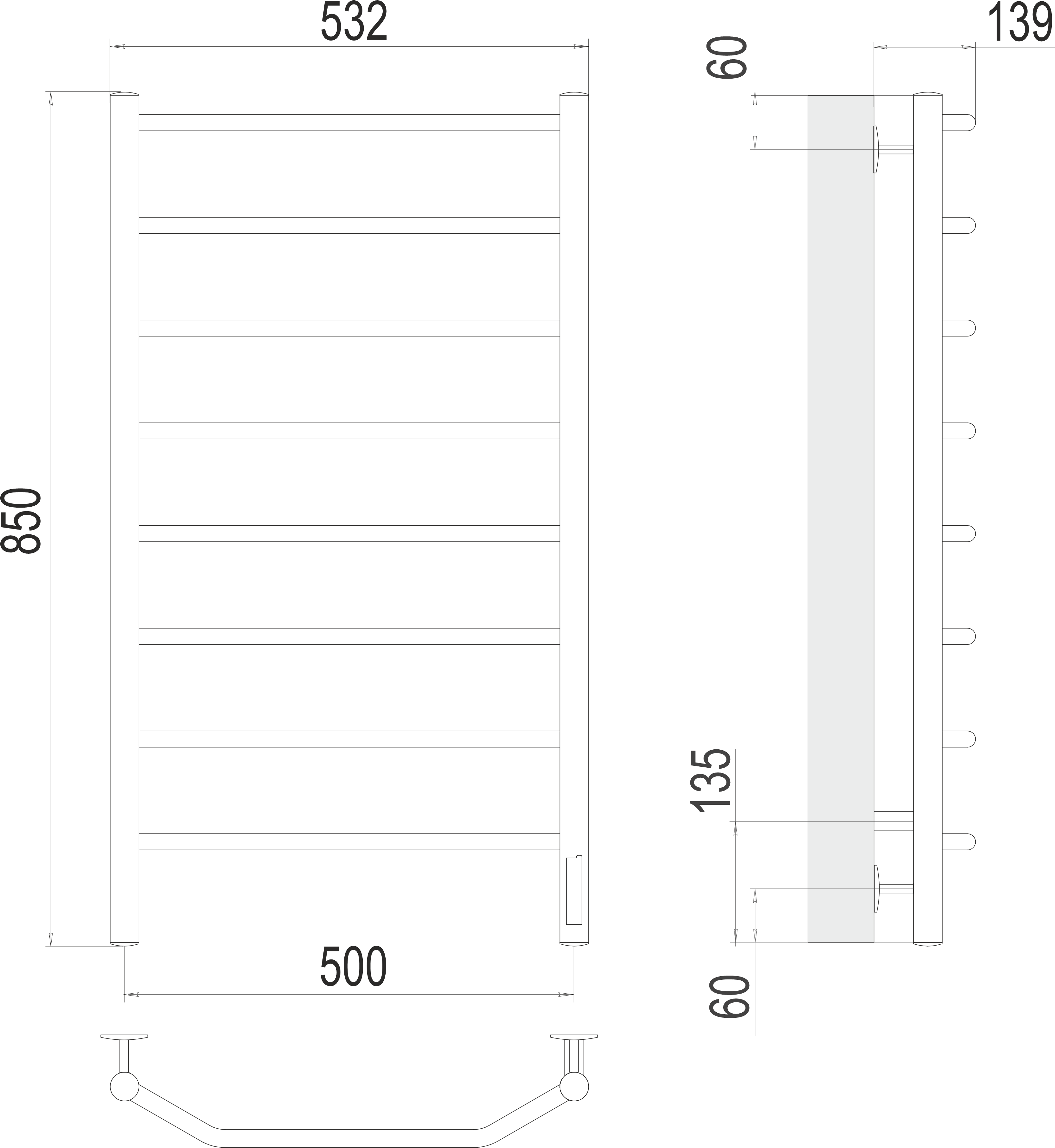 Купить Полотенцесушитель П8 500х850 Электро (quick touch), Виктория 4670078531216 TERMINUS артикул: 212822 в интернет-магазине ESMAG - Челябинск.