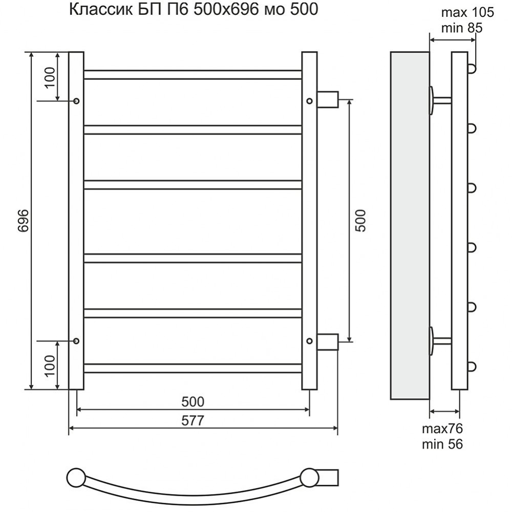 Купить Полотенцесушитель водяной Хендрикс П7 500х796 б/п 500 (слева) 4630080268449 артикул: 194467 в интернет-магазине ESMAG - Челябинск.