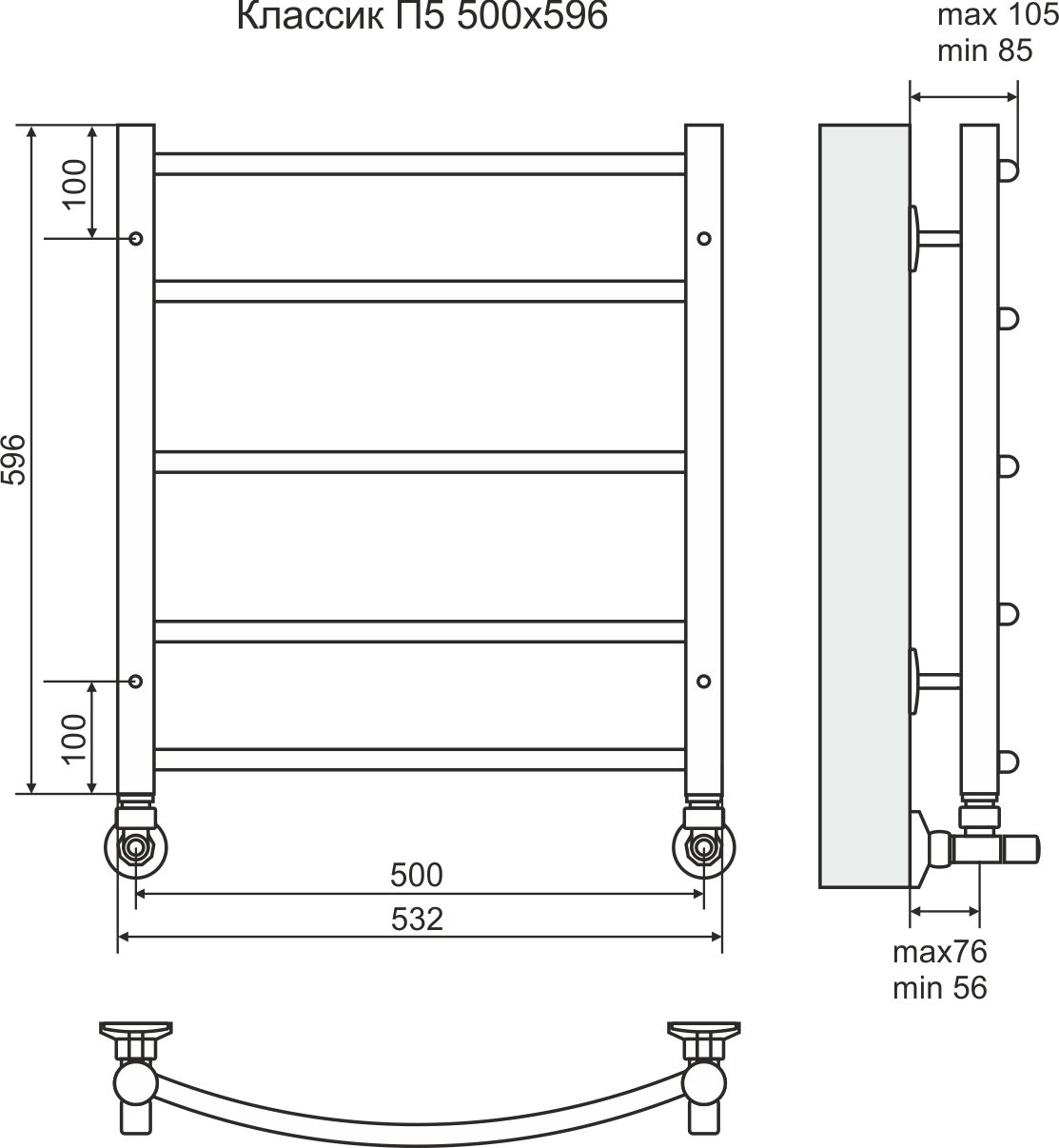 Купить Полотенцесушитель водяной Классик П5 500х596 4670030726247 артикул: 194464 в интернет-магазине ESMAG - Челябинск.