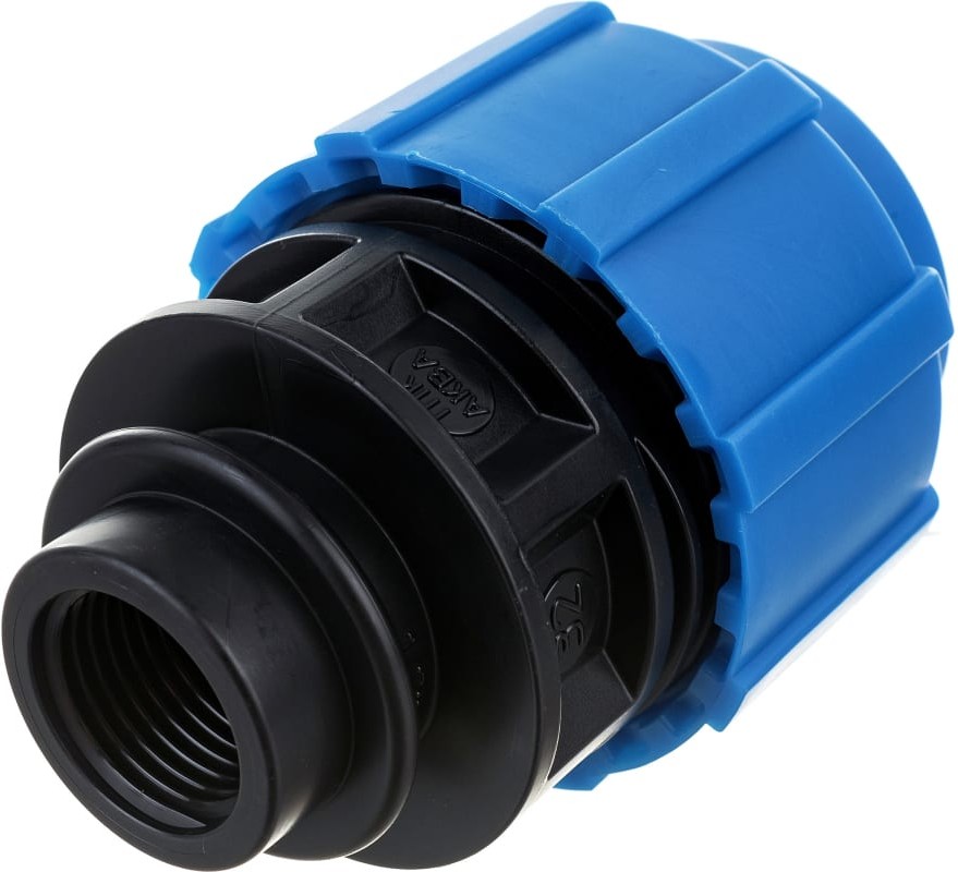 Муфтас внутренней трубной резьбой предназначена соединения стального трубопровода с трубопроводом ПНД труб, так как имеет резьбу соответствующую размерам и стандартам резьбы стальных трубных. Такая муфта так же может использоваться в строительстве различных комбинаций отводов и разветвлений с применением других компрессионных ПНД фитингов. Широкая линейка диаметров - 20, 25, 32, 40, 50, 63, 75, 90 и 110 мм. Материал муфты - полиэтилен низкого давления (ПНД).