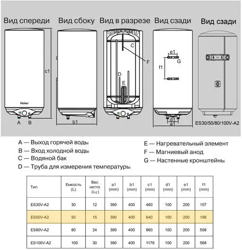 Компактный электрический водонагреватель с увеличенным сроком службы Haier E50V-A2 на 80 литров это: