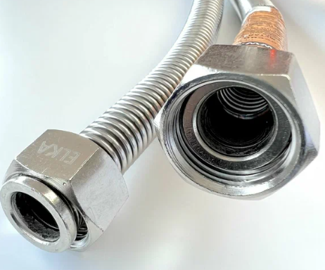 Подводка сильфонного типа представляет собой гофрированный рукав, изготовленный из нержавеющей, стали марки AISI 304 c приваренными аргонно-дуговой сваркой фитингами.